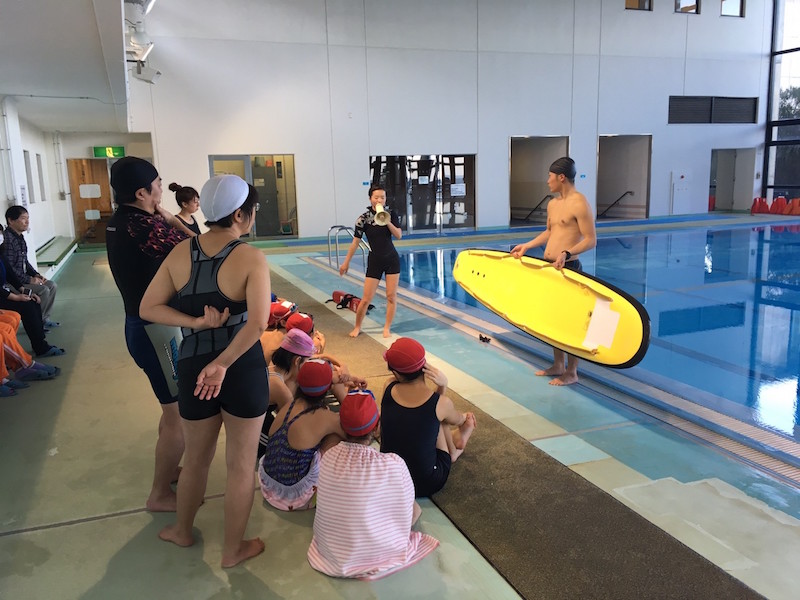 それぞれビーチ・スイム・ボードのチームに分かれてプログラムが行われました。
